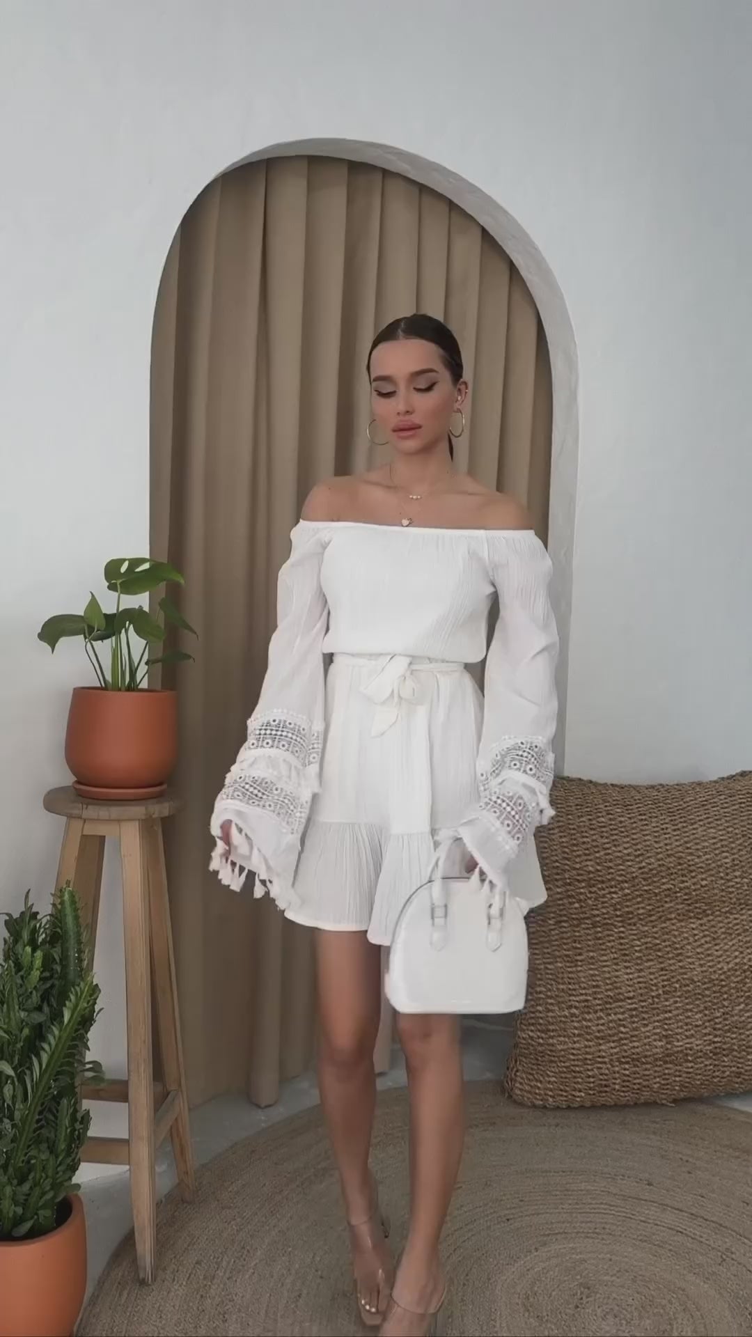 Cotton Dress with Very Long Sleeve - White
