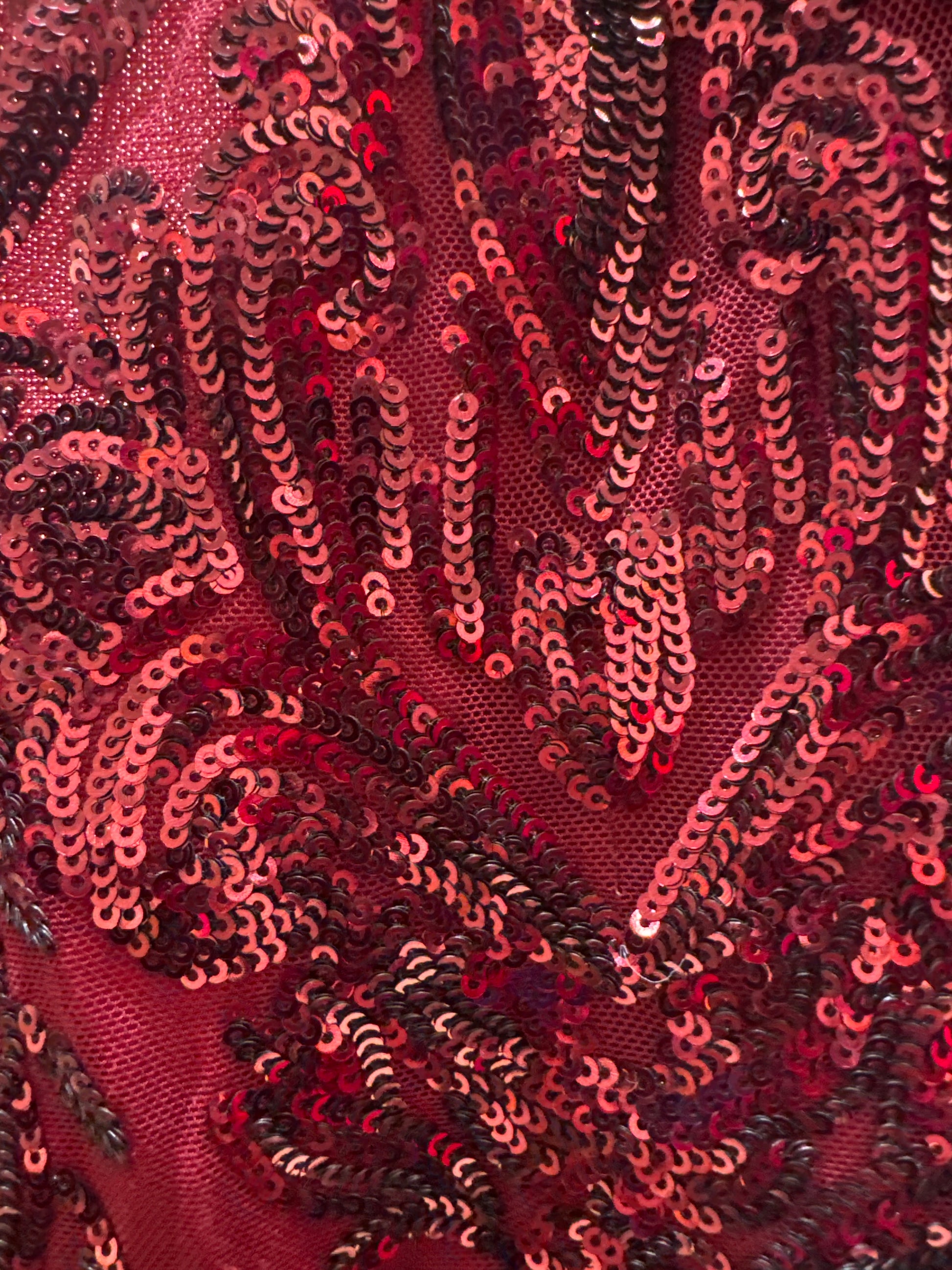 Indulge in luxury with our Mesh Sequined Mermaid Sleeveless Maxi Dress in a stunning shade of Burgundy. The deep V-neck and backless design make it perfect for formal parties. Feel confident and glamorous in this elegant and tasteful dress that will turn heads.
