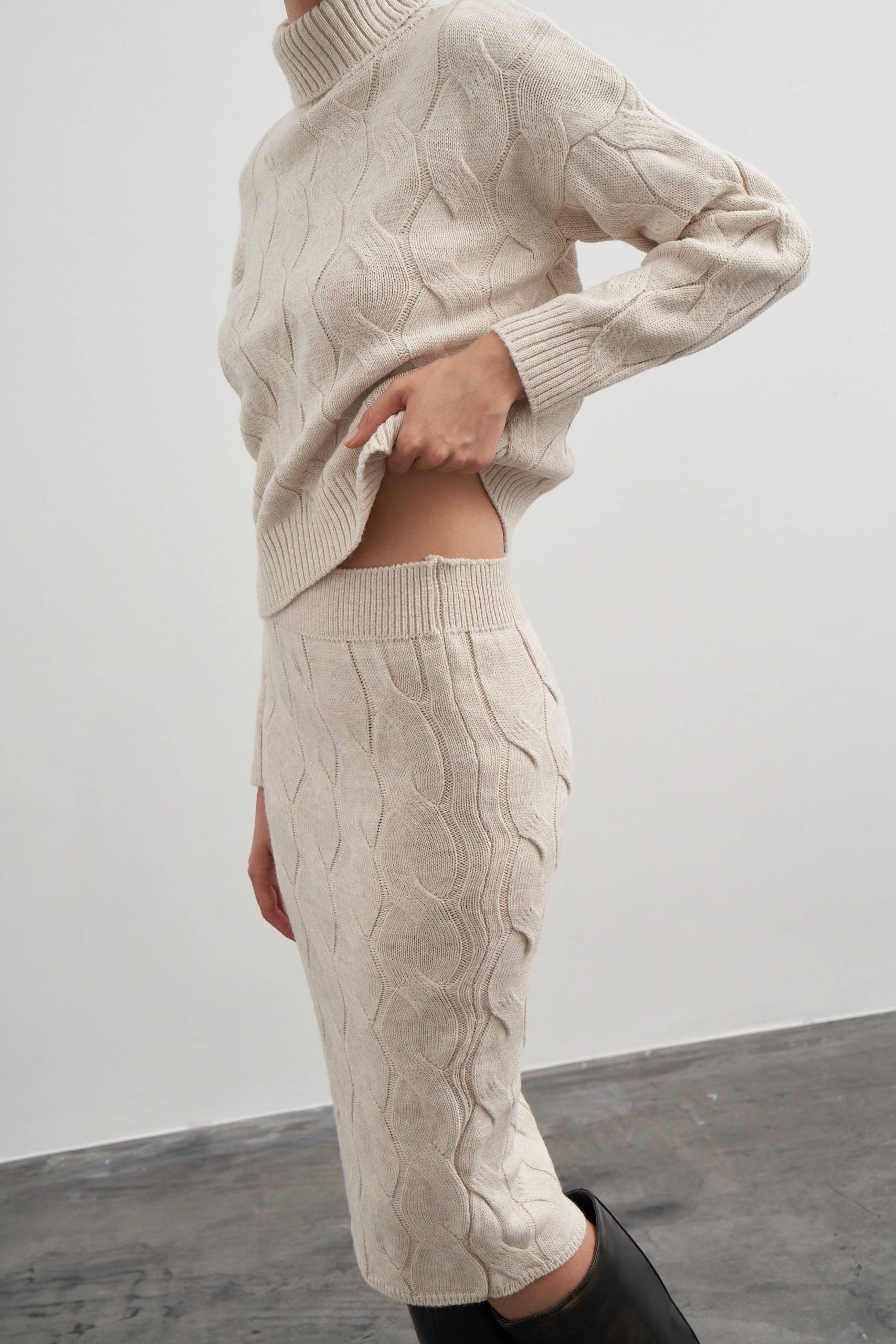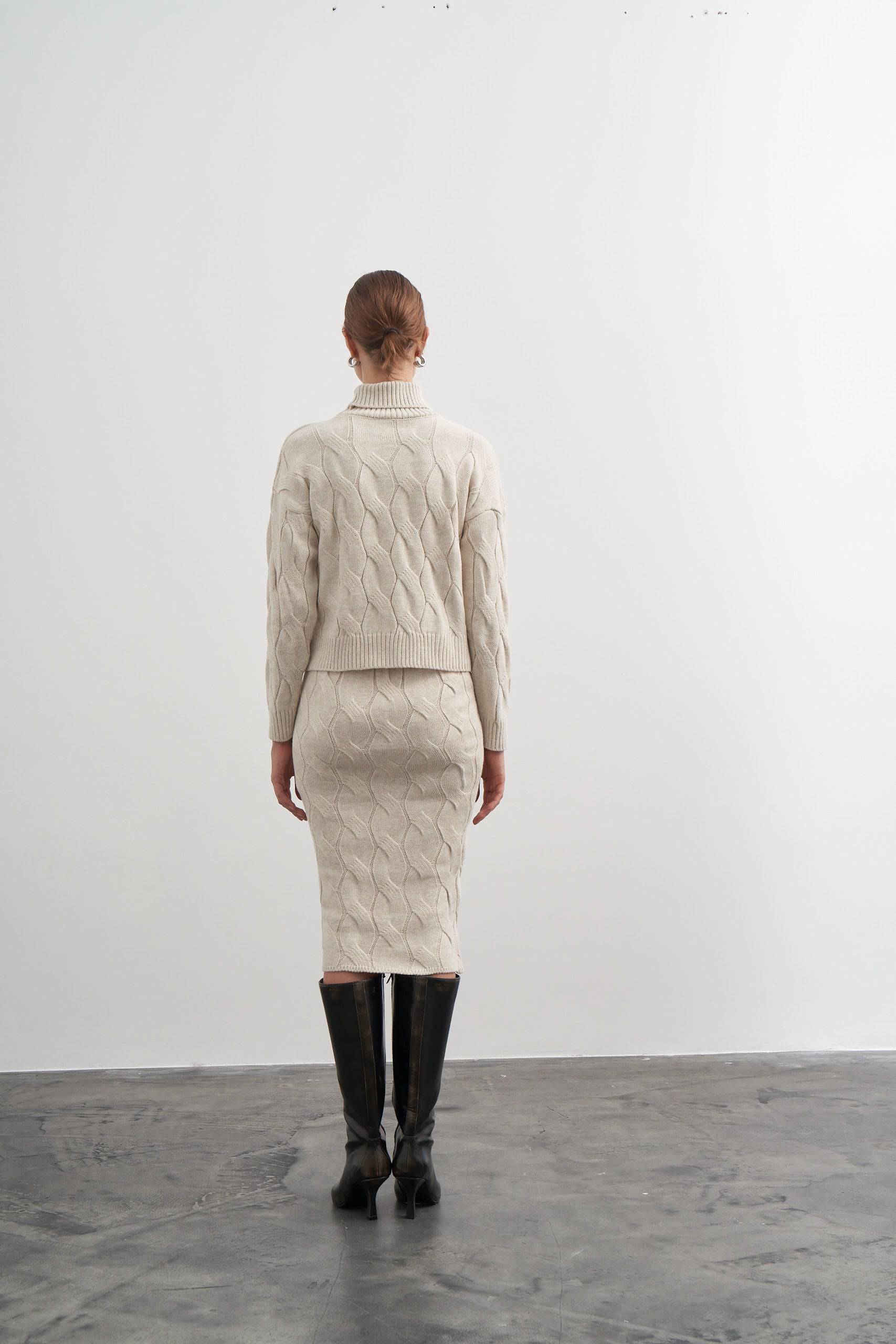 Twisted knitwear two pieces, sweater Midi skirt set